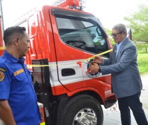 Bupati Maluku Tenggara,Muhammad Thaher Hanubun memotong pita pada pintu mobil Damkar milik pemerintah Kabupaten Maluku Tenggara. (foto: InfoHumas Malra)