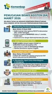 Malraterkini.com.- Kementerian Koperasi Republik Indonesia (Kemenkop RI) resmi menerbitkan Penugasan Bisnis Asisten (BA) untuk bulan Maret 2026. Seluruh tugas yang tercantum dalam penugasan tersebut menjadi komponen perhitungan nilai kinerja dan akan digunakan sebagai dasar evaluasi perpanjangan masa penugasan.