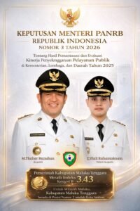 Malraterkini.com.- Pemerintah Kabupaten Maluku Tenggara kembali menorehkan capaian kinerja dengan memperoleh nilai 3,43 dan predikat B. Hasil tersebut merupakan penilaian dari Kementerian Pendayagunaan Aparatur Sipil Negara dan Reformasi Birokrasi (Kemenpan-RB) Republik Indonesia.